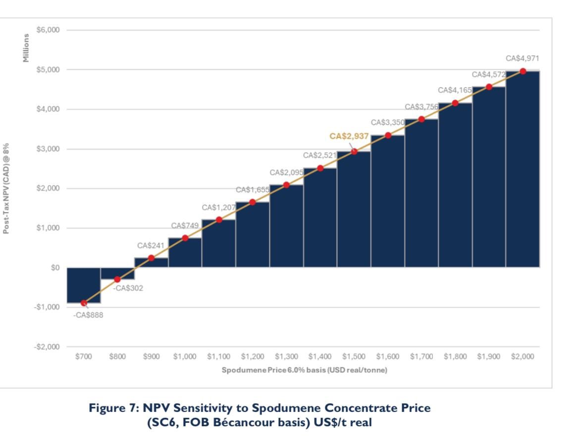 - 10x, back to prior highs. We are in the feasibility downslope at same time as a commodity pullback. Double double counter cyclical in a way. Chart below shows at 1500$/ton price its a 3B present value on the mine. 12x from here.